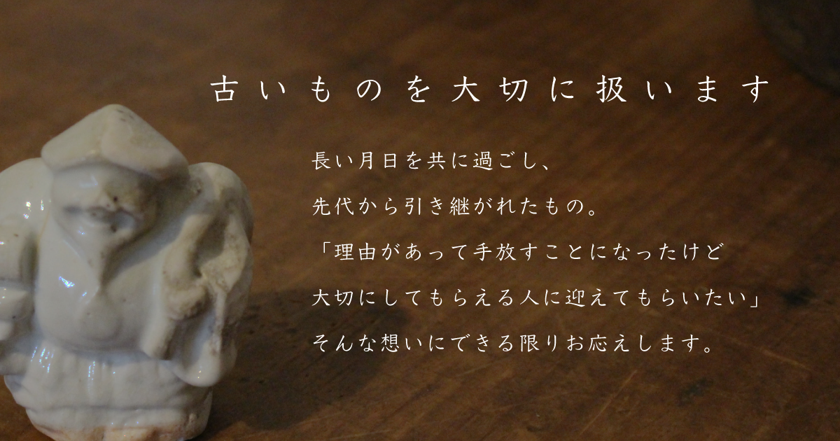 査定する前に高く買い取ってもらおうと、洗ったりご自身で修復したりする方がいらっしゃいますが、古い物の価値が下がってしまうことがほとんどです。汚れていてもきれいな状態でも買取価格は変わりません。